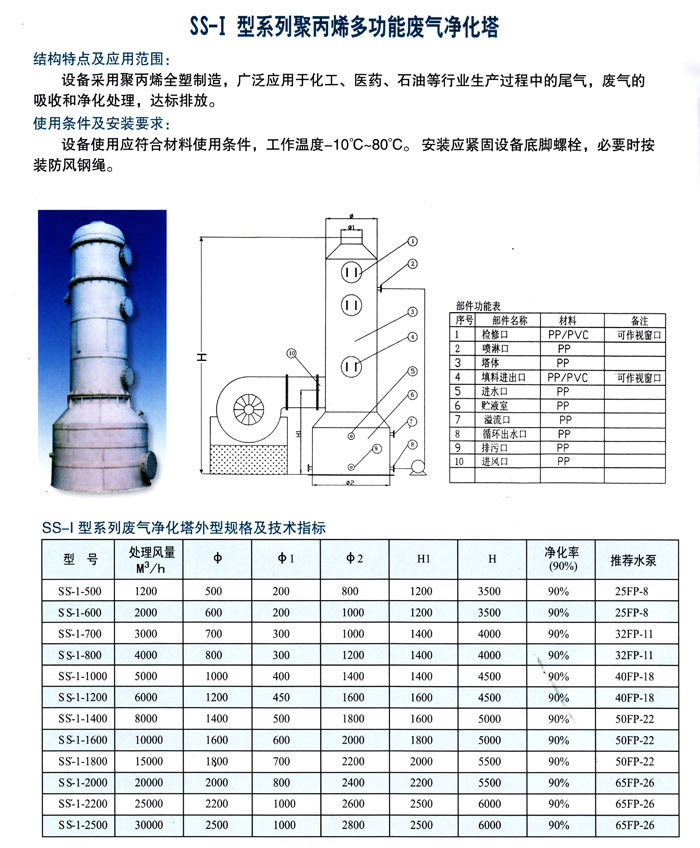 SS-I型系列聚丙烯多功能廢氣凈化塔
